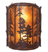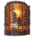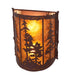 This stunning wall sconce features mesmerizing Tall Pine Trees and woodland metal silhouettes. Beautiful ambient light is projected in an Amber Mica inverted shade complemented with a Rust finish. The Tall Pines Wall Sconce is included in our American-made, American-designed, handcrafted Nature-Inspired Lighting Collection. It was manufactured in Yorkville, New York. UL and cUL listed for dry and damp locations.