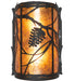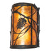 Invite the beauty of nature into your home with a charming wall fixture featuring metal accents designed as Pinecones, Pine needles, and branches. Experience the warm beauty of an Amber Mica diffuser enhanced with an Oil Rubbed Bronze finish. The fixture complements the matching center sconce 261022 and left sconce 261021. The Whispering Pines Right Wall Sconce is featured in our American-made, American-designed, handcrafted Nature Inspired Collection. Manufactured in Yorkville, New York. UL and cUL listed for dry and damp locations.