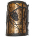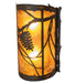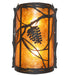 Invite the beauty of nature into your home with a charming wall fixture featuring metal accents designed as Pinecones, Pine needles, and branches. Experience the warm beauty of an Amber Mica diffuser enhanced with an Oil Rubbed Bronze finish. The sconce complements the matching center sconce 261022 and right sconce 261020. The Whispering Pines Left Wall Sconce is featured in our American-made, American-designed, handcrafted Nature Inspired Collection. Manufactured in Yorkville, New York. UL and cUL listed for dry and damp locations.