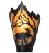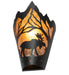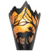 Bring natural beauty into your home with this majestic Moose meandering through the woodlands. This wildlife-adorned sconce is artistically designed with a stunning Amber Mica lens and a jagged edge featuring a Textured Black finish. This handsome fixture will warm your home and your heart. Inspired by Moose that roam popular parks, including the Isle Royale National Park in Michigan, Rocky Mountain National Park in Colorado, and Glacier National Park in Montana. Perfect for illuminating hallways, dining areas, and spaces in residential, hospitality, and commercial settings. The Moose at Dawn Wall Sconce is featured in our American-made, American-designed, handmade Wildlife Lighting Collection and manufactured in the USA. UL & cUL listed for dry and damp locations.
