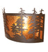 This stunning wall sconce features mesmerizing Tall Pine Trees and woodland metal silhouettes. Beautiful ambient light is projected in an Amber Mica curvaceous shade complemented with an Oil Rubbed Bronze finish. Ideal as a charming wall sconce in a corridor or other space in a timber frame home, camp, or lodge. Inspired by the pine trees in the Adirondack Mountains in Upstate New York, the Sawtooth National Forest in Idaho and Utah, and the Sierra National Forest in California and Nevada. The Tall Pines Wall Sconce is included in our American-made, American-designed, handcrafted Nature Inspired Lighting Collection. Manufactured in Yorkville, New York. UL and cUL listed for dry and damp locations.