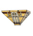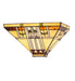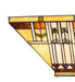 In the Prairie School of architectural style, interpreted organic objects are transformed into geometric forms. This ceiling fixture has colorful interlocking blocks of multmulticoloredss with Bark Brown and Burgundy block-style accents on a Beige background. The art glass shade is created using the famous Meyda Tiffany copperfoil construction process and enhanced with Mahogany Bronze finished hardware. The Prairie Peaks Sconce is included in our American-designed, handmade Prairie Lighting Collection. UL & cUL listed for dry and damp locations. Each shade is a unique work of art with color variations based on natural ingredients inherent in the glass.