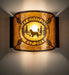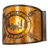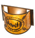 A stunning curvaceous wall sconce is personalized with the DIRT ROAD DOGS EST 2013 logo and graphics. A Dog stands among the Tall Pine trees across the perimeter of the shade, adorned with Oak leaves on the corners. Soft ambient light is diffused beautifully through the Amber Mica lens, which is complemented by an appealing frame and hardware featuring a Dark Burnished Antique Copper finish. The Personalized Dirt Road Dogs Wall Sconce is included in our American-made, American-designed, handcrafted Personalized Collection and manufactured in Yorkville, New York. The fixture is UL and cUL listed for dry and damp locations. This lighting fixture can be ordered by calling us and adding your own business or camp name for your next project. Please call for pricing and lead time.