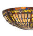 A Meyda Tiffany original... This Fleur-de-lis ceiling fixture is an elegant design featuring stylized three-petal Amber colored Irises with Blue glass jewels among Amber Granite Glass and Beige Iridescent glass. The inverted, crescent-shaped stained glass shade is reminiscent of European castles and cathedral glass and is handcrafted utilizing the famous Meyda Tiffany copperfoil construction process. The fixture is ideal for illuminating hallways and dining areas in homes and restaurants from Madawaska, Maine, to Berlin, New Hampshire, to Baton Rouge, Louisiana. The Fleur-de-lis Wall Sconce is included in our American-designed, handcrafted Fleur-de-lis Collection. UL and cUL listed for dry and damp locations.