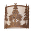 This stunning wall sconce features mesmerizing Tall Pine Trees and woodland metal silhouettes. Beautiful ambient light is projected in a Fleshtone Idalight curvaceous shade complemented with a Pompeii Gold finish. It is ideal as a charming ADA-compliant wall sconce in a corridor or other space in a timber frame home, camp, or lodge. Inspired by the pine trees in the Adirondack Mountains in Upstate New York, the Sawtooth National Forest in Idaho and Utah, and the Sierra National Forest in California and Nevada. The Tall Pines Wall Sconce is included in our American-made, American-designed, handcrafted Nature Inspired Lighting Collection and manufactured in Yorkville, New York. UL and cUL listed for dry and damp locations.