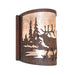 The iconic Elk wanders by a woodland lake in the beautiful afternoon sun, radiating beautiful ambient light through a Silver Mica shade. The fixture is enhanced with a Driftwood Brown finish. To complement this wall fixture, see the matching right wall sconce, model 277543. The Elk Left Wall Sconce is included in our American-made, American-designed, handcrafted Wildlife Collection, which is manufactured in Yorkville, New York. UL and cUL listed for dry and damp locations. Upstate New York's adventurous playland, known as the Adirondack Mountains, with its many breathtaking forests, lakes, and rivers, is the spiritual birthplace of Meyda and inspires our rustic-themed mica collections.