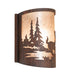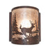 Bring the great outdoors in with this striking wall sconce featuring a Deer scampering alongside a woodland lake as the morning sun rises in the background. Beautiful ambient light is evoked through the Silver Mica lens, which is enhanced by a Driftwood Brown finish. To complement this wall fixture, please take a look at the matching left wall sconce, model 277544. The Deer at Lake Right Wall Sconce is included in our American-made, American-designed, handcrafted Wildlife Collection, which is manufactured in Yorkville, New York. UL and cUL listed for dry and damp locations. Upstate New York's adventurous playland, known as the Adirondack Mountains, with its many breathtaking forests, lakes, and rivers, is the spiritual birthplace of Meyda and inspires our rustic-themed mica collections.