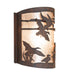 With a swoosh climbing sunward comes a flock of Ducks soaring in flight and stretching out above the marsh reeds against the sun-split sky and up towards the heavens. This charming wall sconce features a stunning Silver Mica shade, which diffuses soft ambient illumination as decorative accents, hardware, and frame are offered in a Driftwood Brown finish. To complement this wall fixture, please look at the matching left wall sconce, model 277548. The Ducks in Flight Left Wall Sconce is featured in our American-made, American-designed, handcrafted Wildlife Lighting Collection. This fixture is manufactured in Yorkville, New York. It is UL and cUL listed for dry and damp locations. Upstate New York's adventurous playland, known as the Adirondack Mountains, with its many breathtaking forests, lakes, and rivers, is the spiritual birthplace of Meyda and inspires our rustic-themed mica collections.