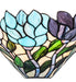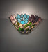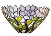 Stylized wisteria flower clusters of China Pink, Grape and Amethyst Blue with Jade Green leaves drape over this Ivory toned graceful copper foil wall sconce shade. The classic styling of this Tiffany style stained glass fixture and soft pastel colors will add charm to any room.
