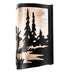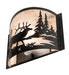 Rustic charm is captured beautifully. This majestic Elk meanders by a woodland lake while the morning sun rises in the background of this natural wildlife inspired wall sconce. Soft ambient light projects through a stunning Silver Mica shade which is complemented with a Textured Black finish. This curvaceous ADA Compliant wall fixture is Made to Order in our 180,000 square foot manufacturing facility in Yorkville, NY. Diffuser colors, metal finishes and fixture sizes can be customized. UL and cUL listed for dry and damp locations.