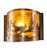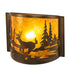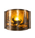Bring the great outdoors in with this striking wall sconce featuring a Deer scampering alongside a woodland lake as the morning sun rises in the background. Beautiful ambient light is evoked through Amber Mica which is enhanced with an Antique Copper finish. This ADA Compliant wall sconce is Made to Order in our 180,000 square foot manufacturing facility in Yorkville, New York, located at the foothills of the Adirondack Mountains. Additional wildlife and custom designs available, as well as custom lens colors, metal finishes and fixture sizes. UL and cUL listed for damp and dry locations.