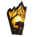 A majestic Bear wanders through the woodlands as the sun rises in the warm summer sky. Pleasant ambient light projects through Amber Mica, which is complemented with hardware and decorative accents featured in a Textured Black finish. Designed with a jagged crest representing the overlooking mountain range, the sconce is custom crafted by Meyda artisans at the foothills of the spectacular Adirondacks in the USA. Create the colors, size and style of your choice. Dimmable energy-efficient lighting options are available. This sconce matches the Bear at Dawn Right Wall Sconce (174333).