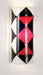 Get your fill of fun and games with the Jester, Metro Fusion ADA compliant wall sconce. Hand cut Black, Red and White glass triangles stack on a slender half tube shade. Fused together in a hot kiln, this fun sconce shade is suspended by Nickel finished powder coated hardware. Designed and created by Meyda artists and craftsmen, for a unique, contemporary fixture.
