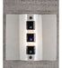 All suited up in our finest array the Black Tie Affair sconce with its square Ebony buttons touched with a drop of dichroic glass set on this Linen White fused glass sconce shade. Metro Fusion is designed and created by Meyda artists and craftsmen of hand cut pieces of glass which are fused together at a high temperature. The glass is mounted on a Nickel powder coated sconce which is ADA compliant.