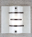 Danger! Danger! Robbi will light the way with this Metro Fusion ADA compliant wall sconce with its Black Sky strips on Moon White fused glass sconce shade. The sconce is designed and created by Meyda artists and craftsmen of hand cut pieces of glass which are fused together at a high temperature. The glass is mounted on Nickel powder coated hardware.
