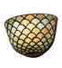 A Louis Comfort Tiffany studio classic Fishscale pattern is reproduced in variegated glass of Blue, Amber, Brown and Green pastels. This beautiful stained glass shade is used with a Mahogany Bronze finish. This stunning wall fixture is created using the famous Meyda Tiffany copperfoil construction process. A versatile wall sconce to complement any color or style. Each shade is a unique work of art with color variations based on natural ingredients inherent in the glass. Contact us if color matching is critical when ordering multiple items. UL and cUL listed for dry and damp locations.