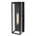 A black, powder-coated frame with classic, clean lines houses a single socket to add sophisticated illumination to your indoor or outdoor space. Note that this fixture is damp-rated but not fully outdoor safe, therefore it's best to place it in a covered area such as a covered porch, entryway, or indoors in a bathroom.