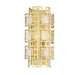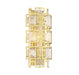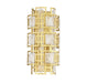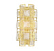 Become mesmerized by the gorgeous geometry of the Savoy House Portia 2-light wall sconce, featuring an eye-catching pattern decorated with pieces of strie piastra glass and finished in a super shimmering True Gold. Portia is 16" in height, 8" in width and extends 4.75" from the wall. It uses two candelabra size bulbs of up to 60 watts per bulb. Damp area rated.