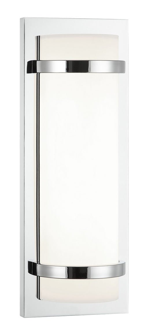 The Dex one light wall sconce in Chrome is a contemporary design with three finishes and white acrylic diffuser creating a crisp look and bright cl...
