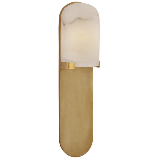 Melange Medium Elongated Pill Sconce in Antique-Burnished Brass with Alabaster ShadeDetails:Product Type: PocketFinish: Antique-Burnished BrassShad...