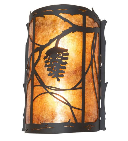 This stunning wall sconce features mesmerizing Tall Pine Trees and woodland metal silhouettes. Beautiful ambient light is projected in an Amber Mic...