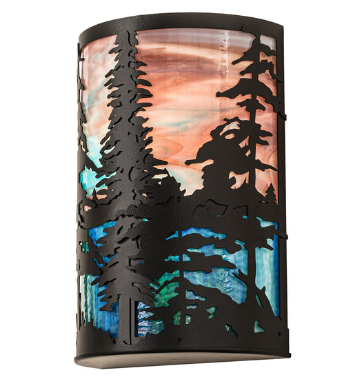 This curvaceous sconce features mesmerizing Pine Tree silhouettes that stand tall as the brilliant morning sun rises above a brilliant mountain lak...