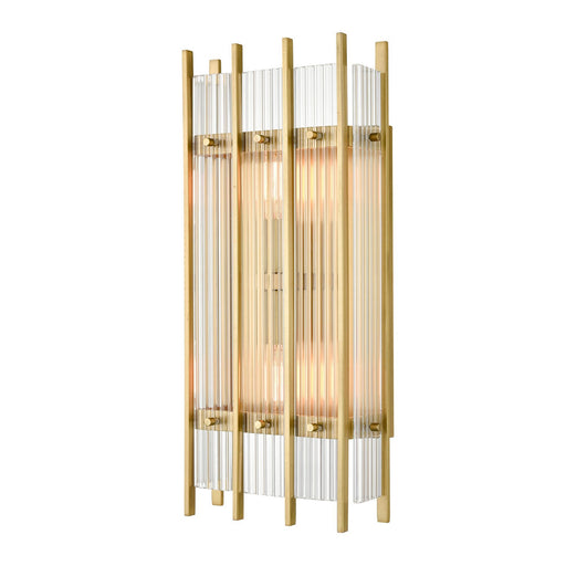 2-Light Fluted Glass Panel Aged Brass Vertical Wall Sconce.Details:Product Type: PocketFinish: Aged BrassShade: Thick flutedMeasurements:Width / Di...