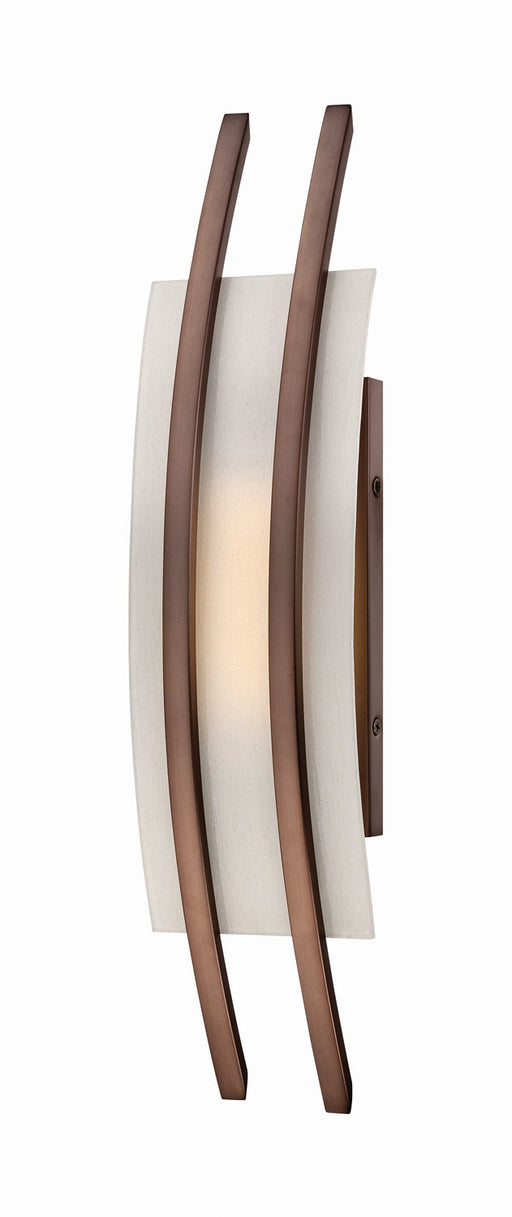 The Trax wall sconce features twin ribs of hazel bronze supporting a gently curved pane of frosted glass. This elegant, eye-catching sconce is desi...