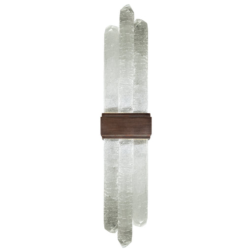 Sconce features a three-dimensional contrast of deep textured and polished cast glass. This stunning landscape of the glass, illuminated by waterpr...