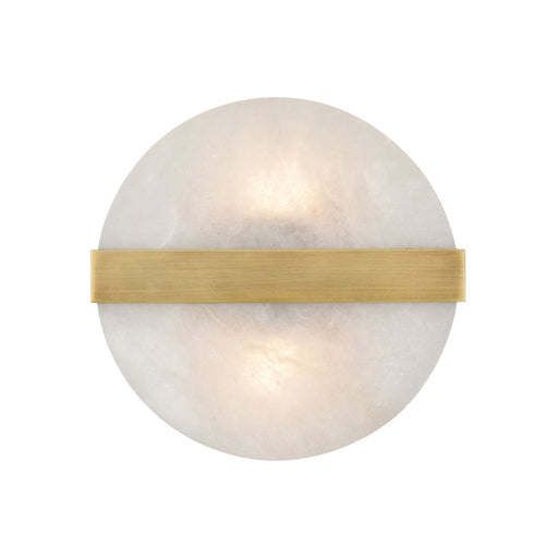 This wall light is crafted from a disk of white alabaster stone. Sitting flush to the wall, it gently glows revealing the beauty of the natural sto...