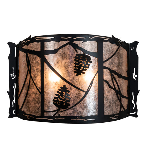 Breathtaking Pinecone and Pine Branch designs adorn the beautiful Silver Mica diffuser of this Whispering Pines wall sconce. This nature inspired c...