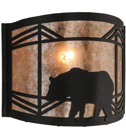 A Black Bear in a diamond pattern is featured on this nature inspired wall sconce. Illuminated through Silver mica panels, the fixture has a Black ...