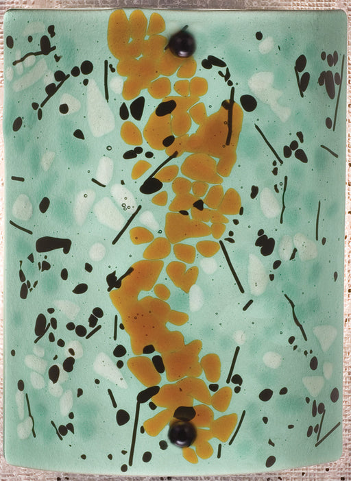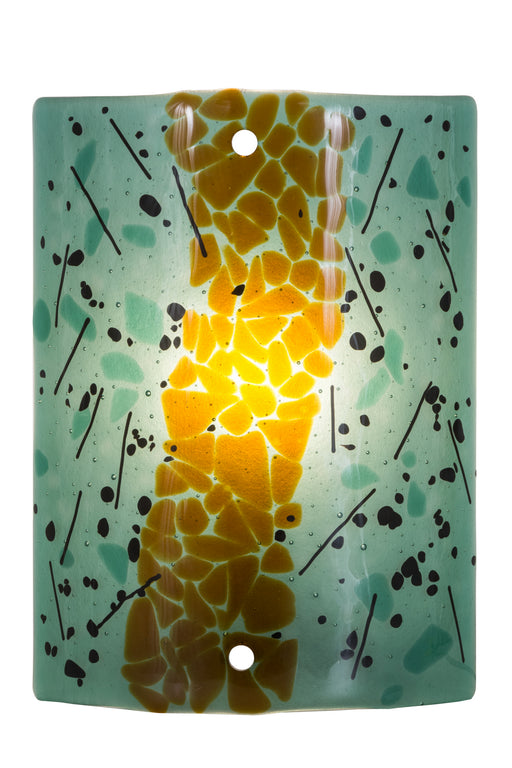 Say molto bello to the Muro Verde, Metro Fusion ADA compliant wall sconce. A Seafoam Green hot dish with chips, streamers and a river of Amber glas...