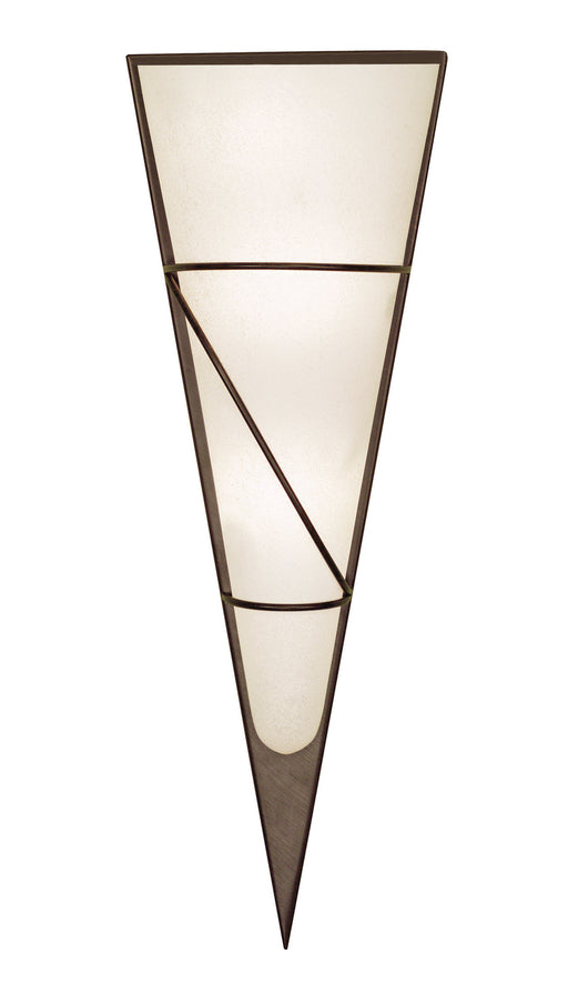 Our Baron Wall Sconce is geometrically sophisticated with its disc of smoky quartz resting in a triangular frame made of wrought iron in a silver l...