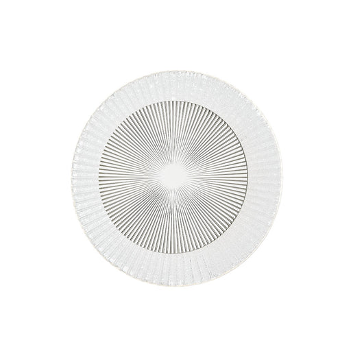 A series of nested natural rattan rings create an elegant disc shade accented by a contrasting stainless steel center plate for a balanced modern y...