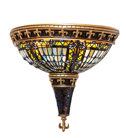 A Meyda Tiffany original design, the Fleur-de-Lis wall sconce is an intricate design of Purple stylized tri-petaled irises and Azure colored jewels...