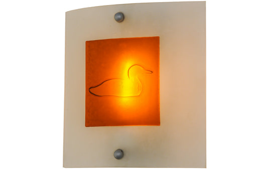A subtle yet stunning impression of the aquatic Loon design is featured in Amber fused glass on a Clear Frosted Glass background. The geometric wil...