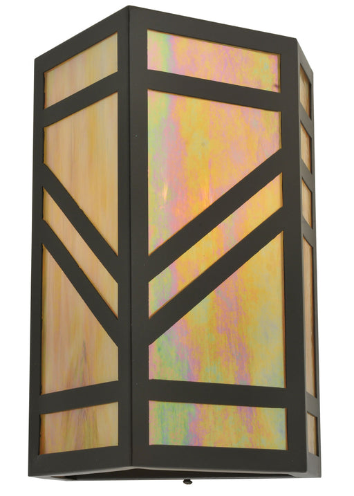 A striking southwestern Mission styled design is featured on the stunning Santa Fe wall sconce. A Beige Iridescent art glass diffuser is combined w...