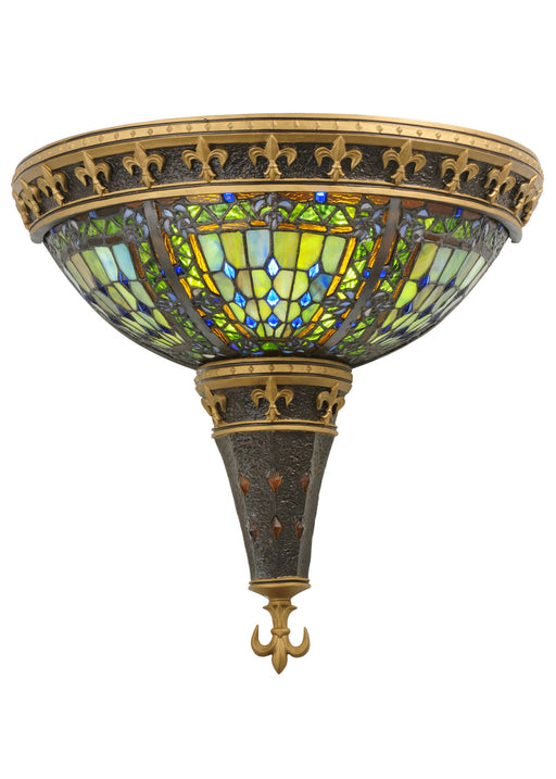 An original Meyda design, this exquisite Fleur-de-Lis inverted shade features an intricate tilework mosaic of Blue, Green, Teal, Mauve, Pink, Purpl...