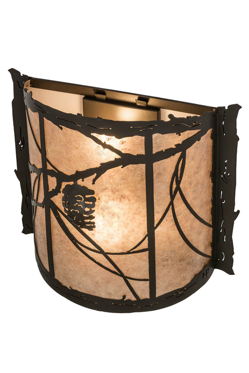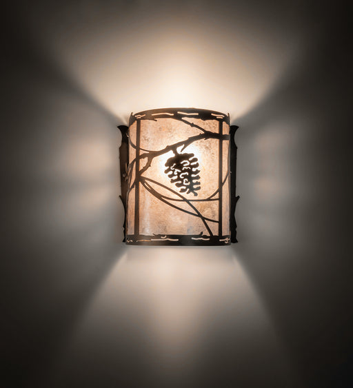 A single Pine Cone with branches and Pine needles accent this rustic wall sconce handcrafted in the USA by Meyda artisans. This nature inspired fix...