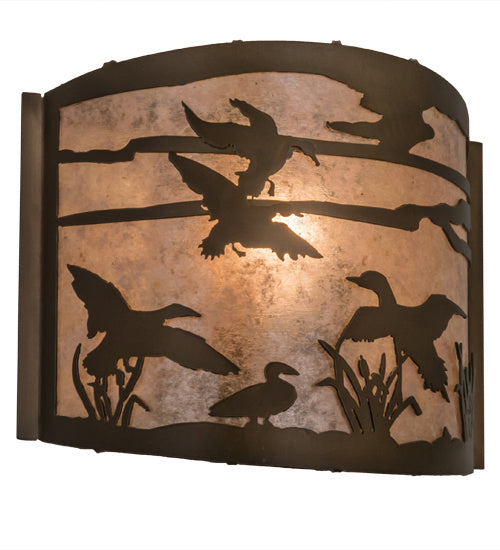 A flock of Ducks in and above cattails and marsh grasses accent this wildlife inspired wall sconce handcrafted in the USA by Meyda artisans. This f...
