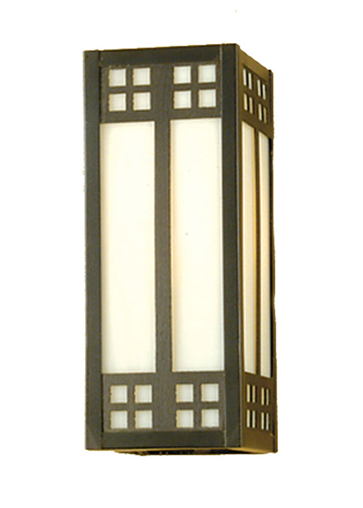 This artistic wall fixture is designed with an appealing White art glass in a Mission styled frame, which is featured with gridwork accents and har...