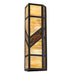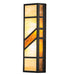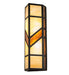 Santa Fe features a striking southwestern Mission design for the ages. A charming aura projects from the Beige Art Glass, which is highlighted with bold geometric styling with Amber Mica accents. Complemented with a Flat Black finished frame and hardware, the handcrafted wall fixture is ideal for ambient decorative lighting in hallways and other residential, hospitality, and commercial spaces throughout the US, including Taos, New Mexico, Joshua Tree, California, and Moab, Utah. The fixture can double as a vanity light in fine baths. The?Santa Fe Wall Sconce is featured in our American-made, American-designed, handcrafted Southwest Lighting Collection. This fixture is manufactured in Yorkville, New York. UL and cUL listed for dry and damp locations.