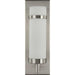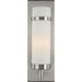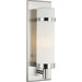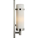 Ease yourself into a state of complete bliss and relaxation under the luxurious glow of this wall sconce. A stunning, cylinder-shaped etched opal glass diffuser held in place by a thin metal bar recalls visions of elegant candlesticks. The diffuser sits on top of a pedestal-like light base attached to a beautiful brushed nickel backplate.