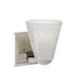 The Nico 5 Glitter Stone Vanity is a contemporary bath design, employing a softly radiused housing and sparkling textured shades. Our Glitter Stone glass is a clear blown glass with an outer texture of coarse sandstone. Inspired by the elements of nature, the appearance of the surface resembles the beautiful cut patterning melting ice over a rock formation. Then a technologically advanced crystal coating is applied to the inside. The coating contains multiple micro-layers of glass particles that create unique prismatic optical properties, which effectively alter both the reflected and transmitted light. So unlit, it appears like a frosted glass, when lit, it becomes alive with dazzling light effects. The mini sconce fixture is equipped with a sleek arcing diecast lampholder and matching radiused rectangular canopy. These stylish and functional luminaries are offered in a beautiful Chrome finish.