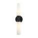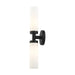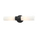 Add a dash of character and radiance to your home with this vanity sconce. This two-light fixture from the Aero Collection features a black finish with two satin opal white glass cylinder shades on either side. The clean lines of the back plate complement the cylindrical glass shades creating a minimal, sleek, urban look that works well in most decors. This fixture adds upscale charm and contemporary aesthetics to your home.