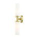 Add a dash of character and radiance to your home with this vanity sconce. This two-light fixture from the Aero Collection features a satin brass finish with two satin opal white glass cylinder shades on either side set off with multiple finish options. The clean lines of the back plate complement the cylindrical glass shades creating a minimal, sleek, urban look that works well in most decors. This fixture adds upscale charm and contemporary aesthetics to your home.