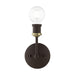 Simplicity and attention to detail are the key elements of the Lansdale collection. The dimensional form, exposed bulbs and combination of finishes adds a playful mood to a contemporary or urban interior. This single-light sconce design gives a new face to a bedroom, hallway or a bathroom vanity. It is shown in a bronze finish with an antique brass finish accent.
