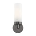 Add a dash of character and radiance to your home with this wall sconce. This single-light fixture from the Aero Collection features a black chrome finish with a satin opal white glass. The clean lines of the back plate complement the cylindrical glass shade creating a minimal, sleek, urban look that works well in most decors. This fixture adds upscale charm and contemporary aesthetics to your home.