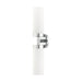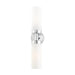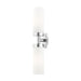 Add a dash of character and radiance to your home with this vanity sconce. This two-light fixture from the Aero Collection features a polished chrome finish with two satin opal white glass cylinder shades on either side. The clean lines of the back plate complement the cylindrical glass shades creating a minimal, sleek, urban look that works well in most decors. This fixture adds upscale charm and contemporary aesthetics to your home.